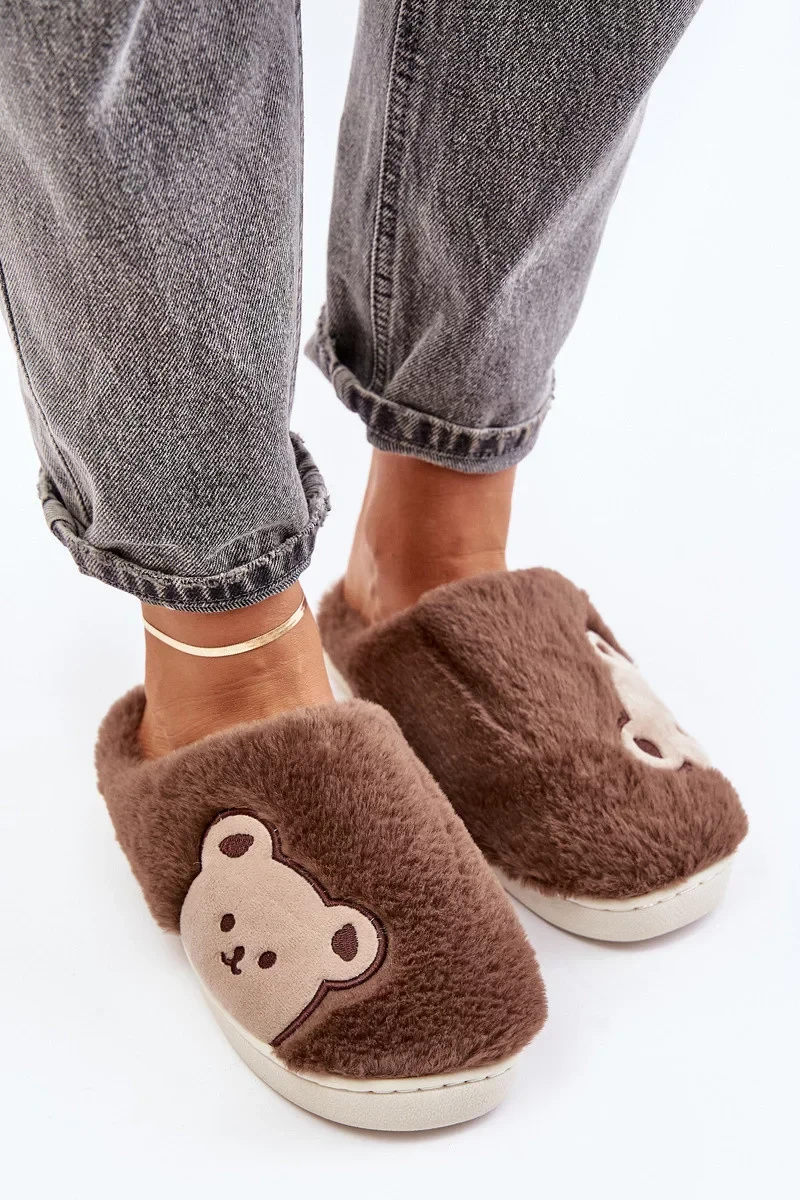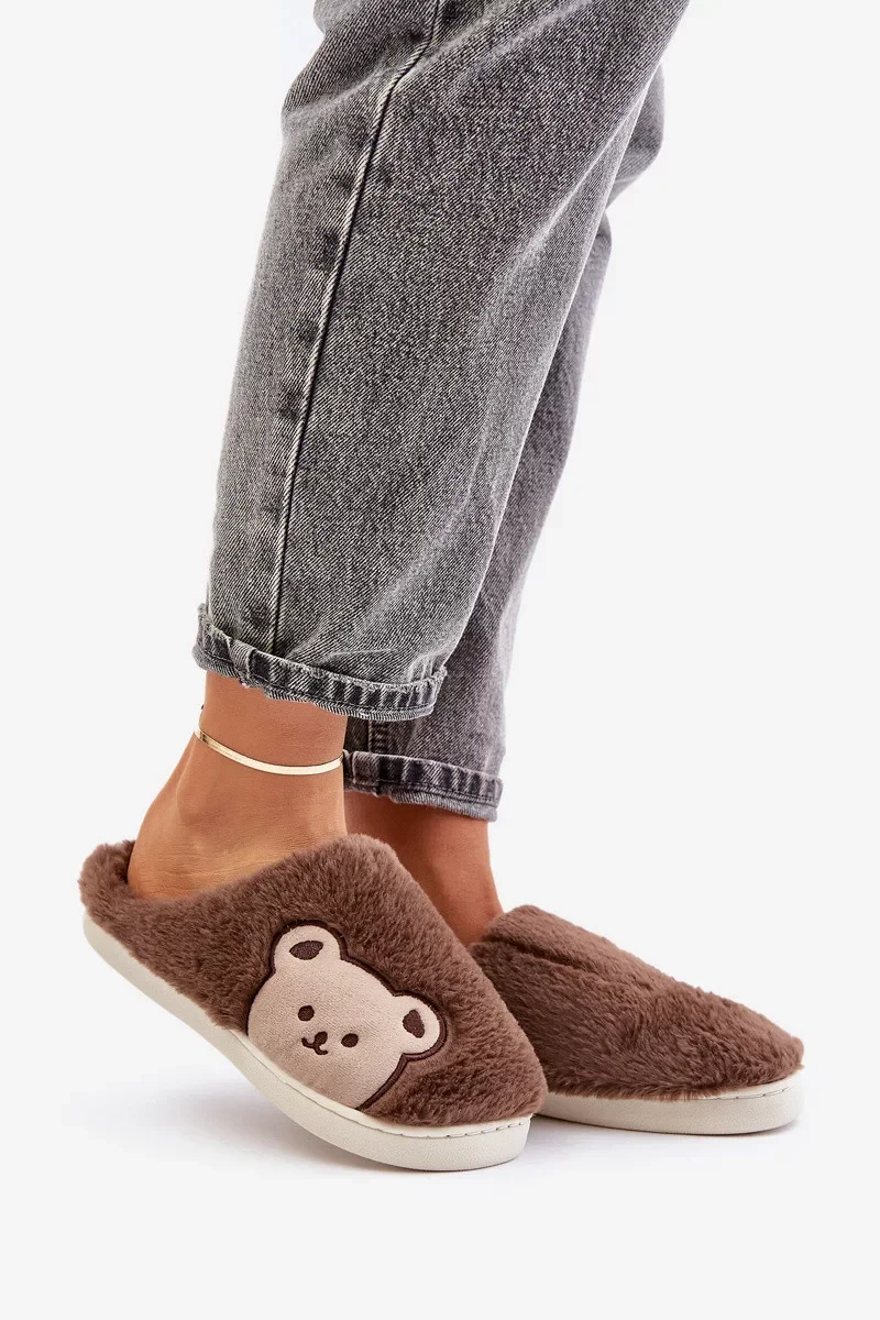 Dámské Chlupaté Pantofle S Medvídkem Hnědé Fiorinella