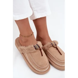 Béžové dámské papuče Perivelle s hřejivým kožíškem a elegantní výšivkou poskytují pohodlí a teplo při domácím nošení. Měkká konstrukce a lehká podrážka zajišťují komfort po celý den.