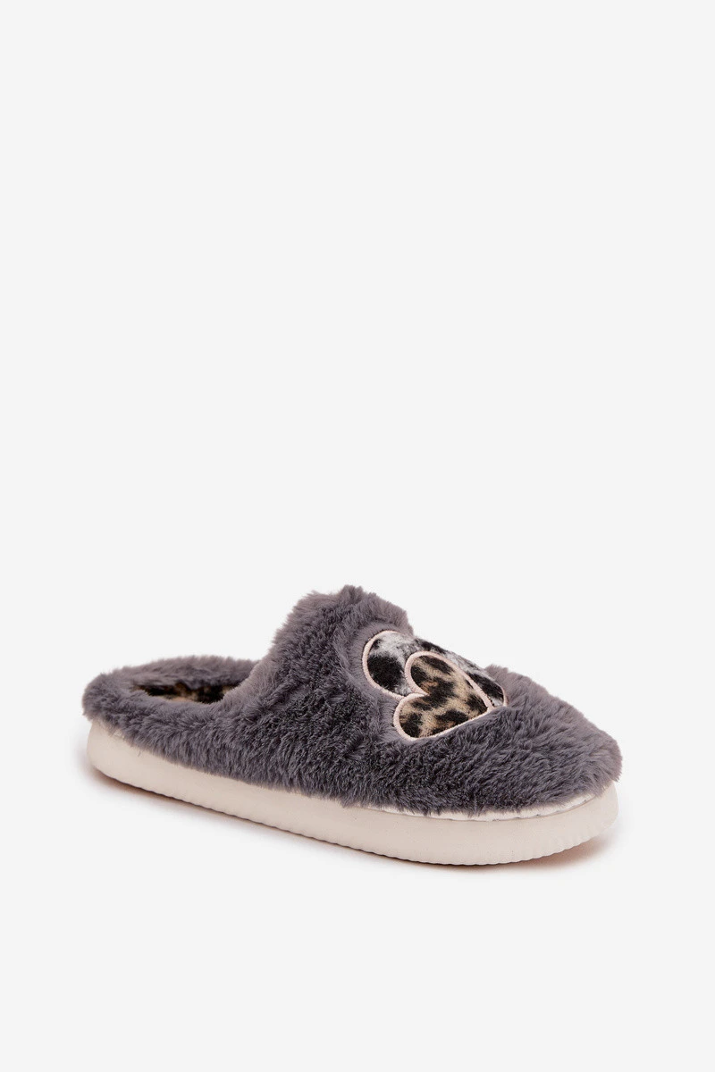 Šedé dámské papuče Amandra s hebkým kožíškem a hravými srdíčky poskytují maximální pohodlí a útulný pocit při domácím nošení. Měkký materiál zahřeje nohy a lehká podrážka zajišťuje komfort po celý den.