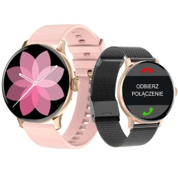 Smartwatch Damski GIEWONT GW330-4 to nowoczesny i stylowy dodatek, który doskonale łączy funkcjonalność z eleganckim, kobiecym designem. Został zaprojektowany tak, aby podkreślać indywidualny styl użytkowniczki, jednocześnie oferując praktyczne rozwiązania na każdy dzień. Smukła koperta i subtelne detale sprawiają, że zegarek prezentuje się wyjątkowo szykownie, a możliwość wymiany paska pozwala jeszcze lepiej dopasować go do stroju i okazji. Urządzenie oferuje szeroki zakres funkcji, które usprawniają codzienność. Można z niego rozmawiać, odczytu wiadomości i powiadomień z telefonu, przez kontrolę muzyki, aż po wygodne zdalne sterowanie aparatem. Wszystko to dostępne jest na wyraźnym, kolorowym ekranie, który zapewnia komfort obsługi niezależnie od warunków. GIEWONT GW330-4 wspiera również dbanie o zdrowie i dobre samopoczucie. Monitoruje tętno w czasie rzeczywistym, analizuje jakość snu oraz zlicza kroki i spalone kalorie, dzięki czemu możesz na bieżąco śledz