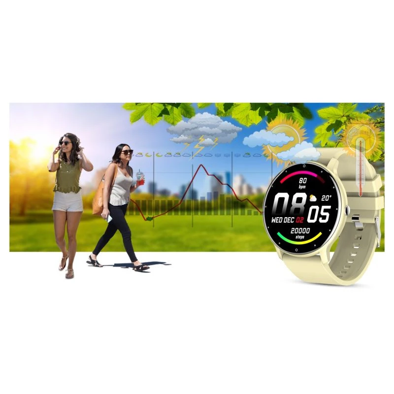 Chytré hodinky po připojení k aplikaci zobrazují údaje o počasí. nyní stačí jediný pohled na chytré hodinky a už víte, jaké bude v nejbližší době počasí. díky počasí na chytrých hodinkách můžete lépe plánovat své aktivity a vhodně se oblékat podle okolního počasí!