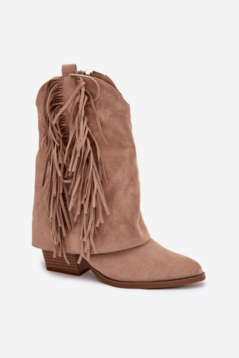 Dámské cowboy boty s třásněmi na podpatku Khaki Gralina