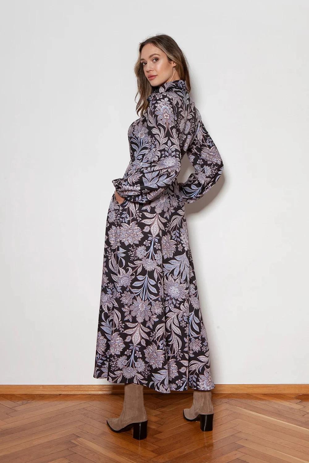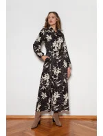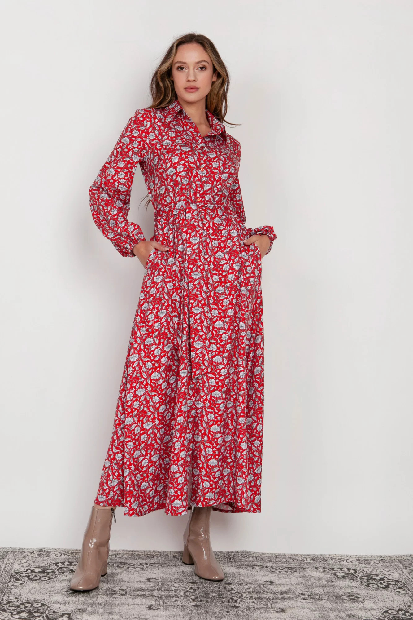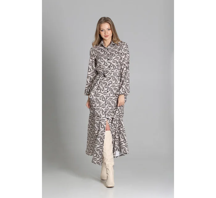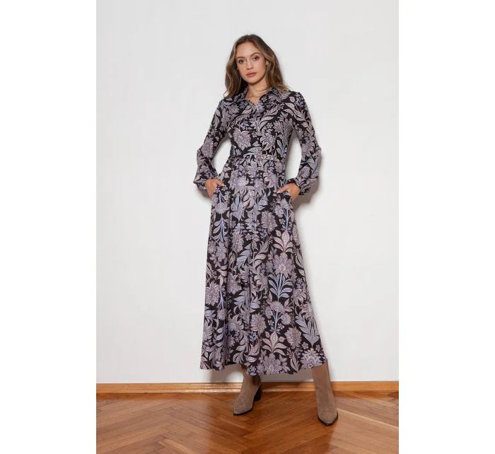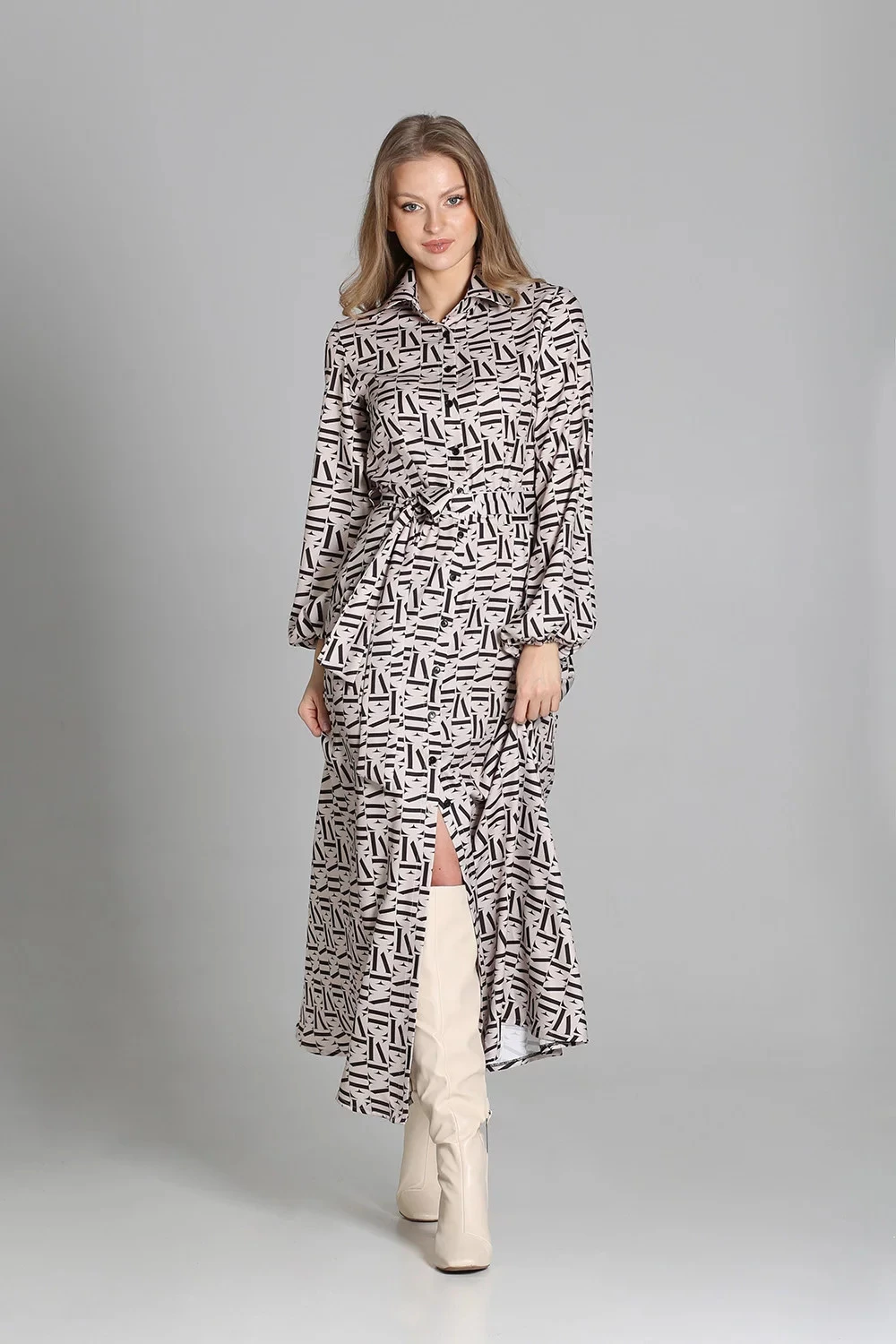 Dlouhé košilové šaty se zapínáním na knoflíky. Rozšířený lem s šerpou uvázanou v pase s poutky na pásek. Dlouhé rukávy zakončené gumičkou. Vyrobeno s důrazem na nejmenší detaily. A ano, samozřejmě má kapsy!