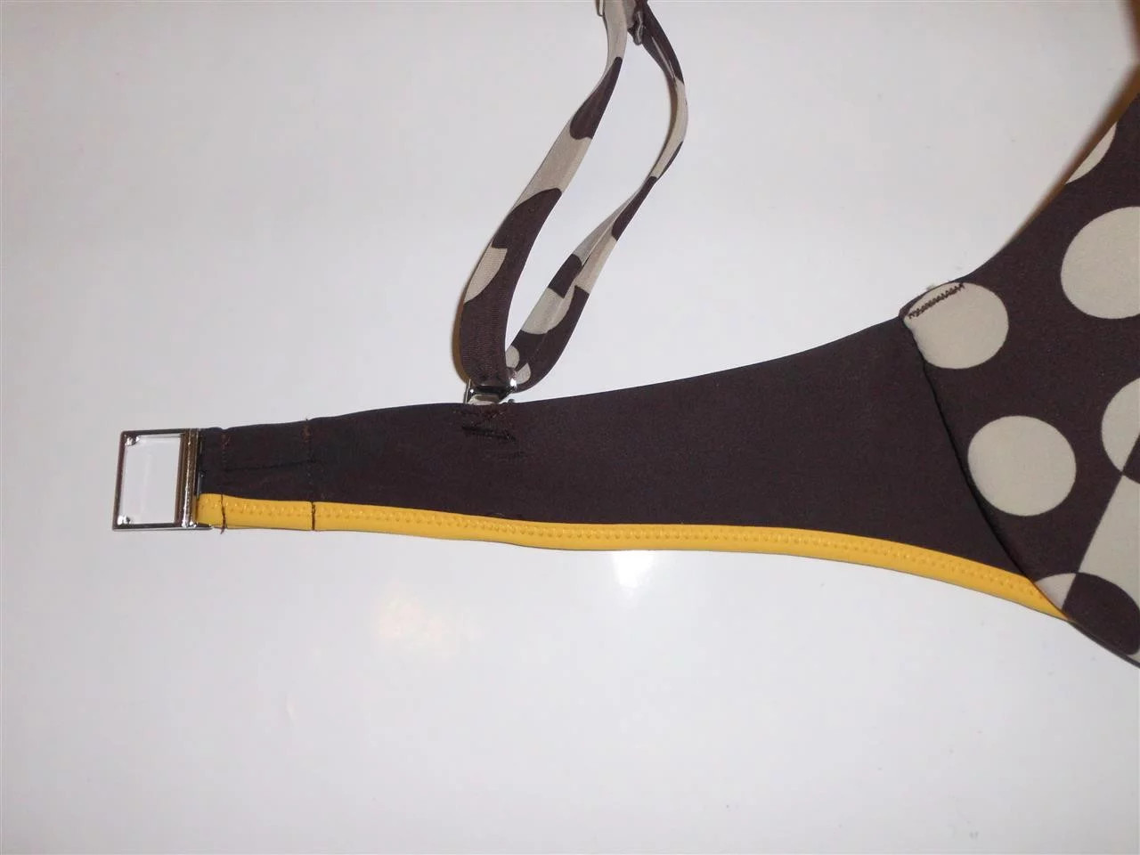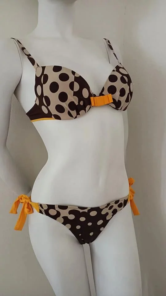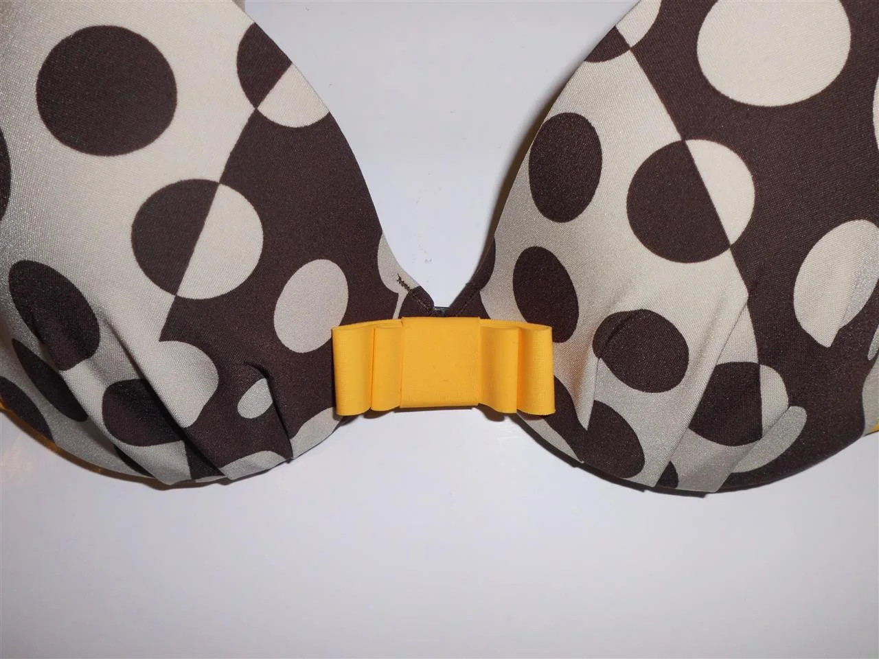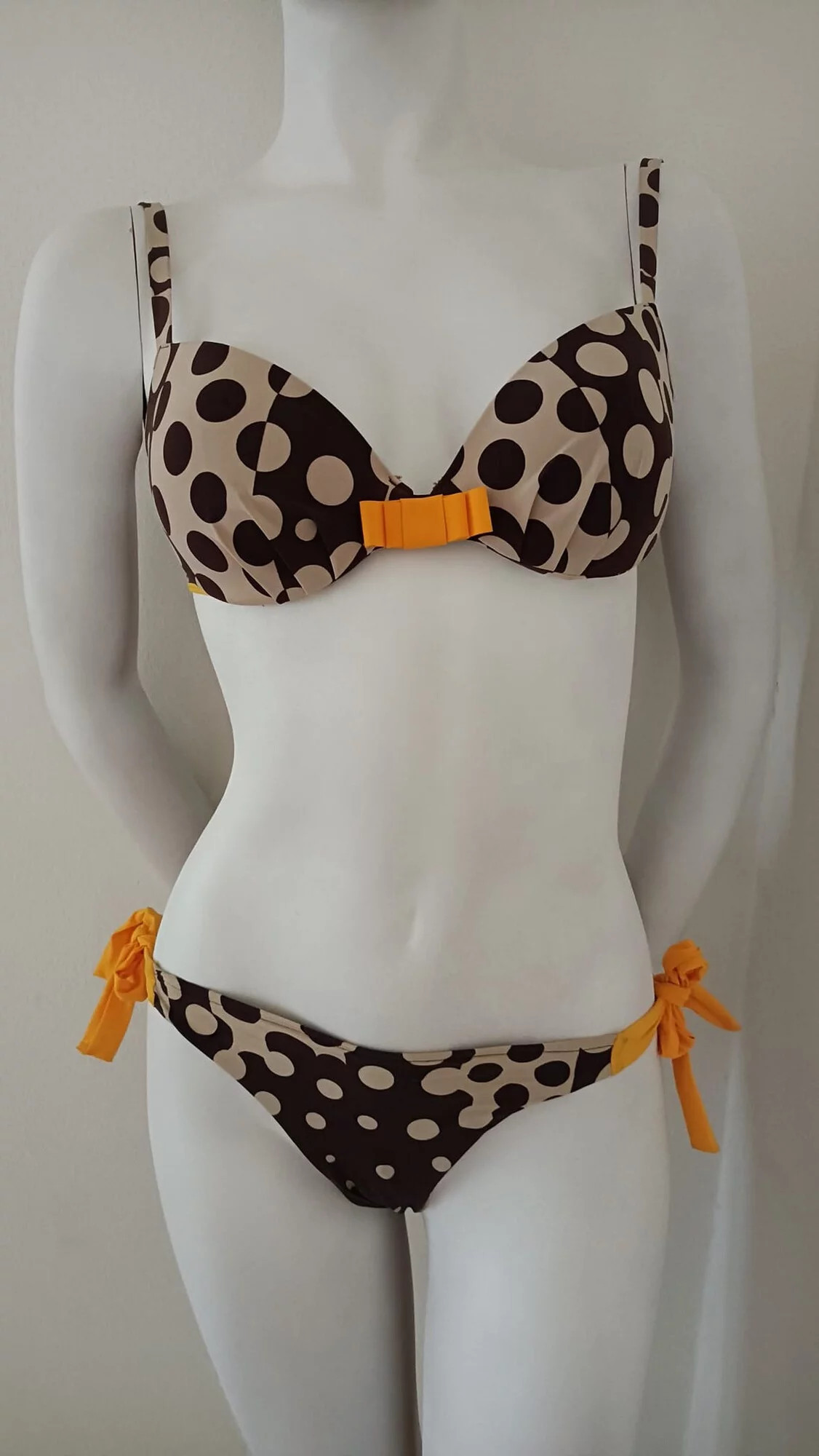 Dámské plavky ABA8555C - Lise Charmel, podprsenkový střih. Košíčky zdobí puntíky a střed oranžová mašlička. Materiál 42% polyamid, 29% polyuretan, 15% polyestr, 14% elastan.