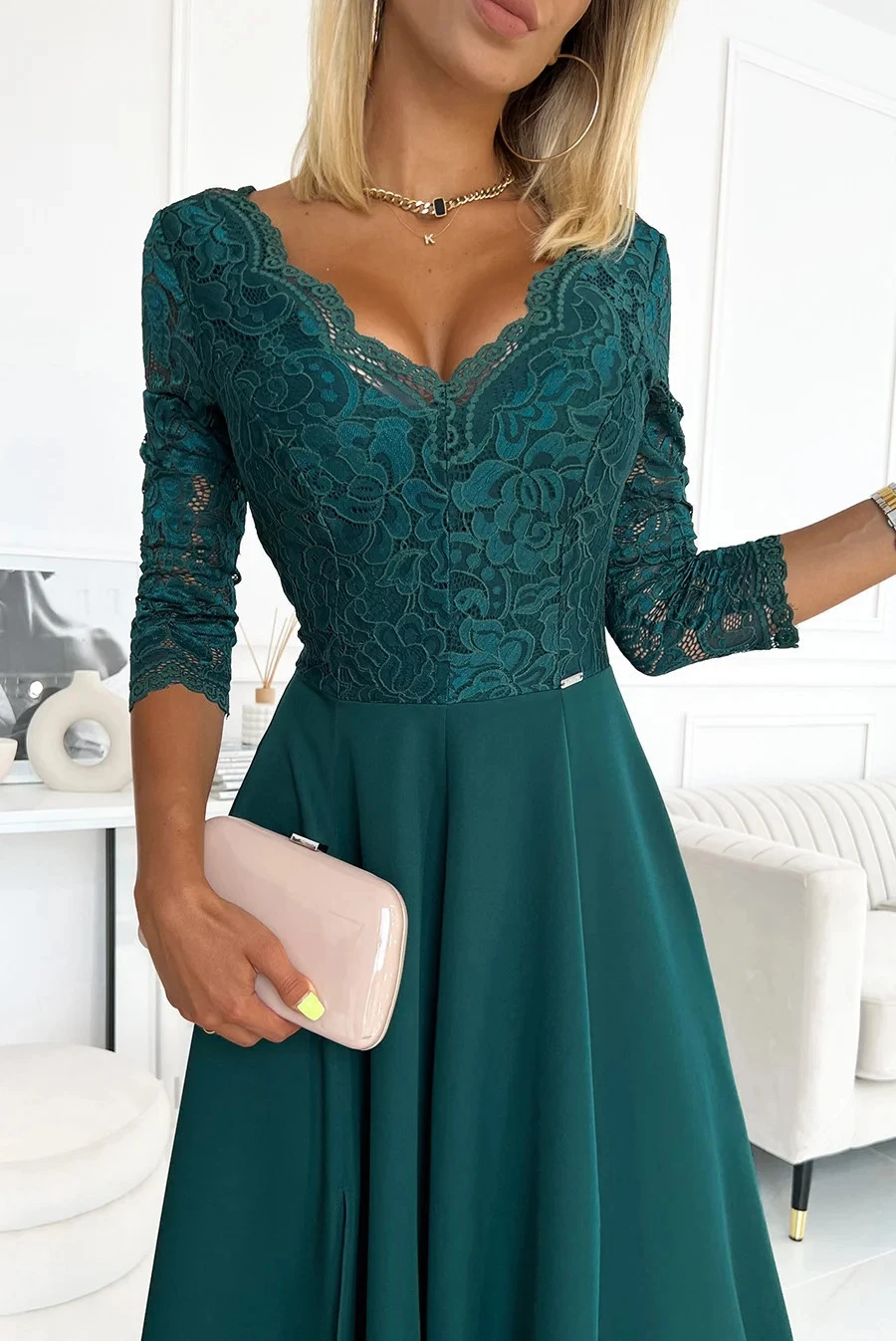 Přidání recenze k Dámské dlouhé krajkové šaty tmavě zelené model 21413434 - numoco