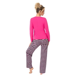Komfortowa piżama damska wykonana w 100% z wysokiej jakości bawełny to idealny wybór na chłodniejsze noce. Klasyczna koszulka z długim rękawem i okrągłym dekoltem ozdobiona została modnym napisem „I ♥ sleep”, co dodaje jej uroku i podkreśla lekki, kobiecy charakter. Do kompletu dołączone są długie, wygodne spodnie w ponadczasową kratkę, które nie tylko świetnie wyglądają, ale także gwarantują swobodę ruchów i wygodę przez całą noc. Naturalny materiał sprawia, że piżama jest miękka, przewiewna i przyjemna w dotyku. Zestaw zapakowany jest w foliowy worek – świetny pomysł także na prezent.