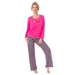 Komfortowa piżama damska wykonana w 100% z wysokiej jakości bawełny to idealny wybór na chłodniejsze noce. Klasyczna koszulka z długim rękawem i okrągłym dekoltem ozdobiona została modnym napisem „I ♥ sleep”, co dodaje jej uroku i podkreśla lekki, kobiecy charakter. Do kompletu dołączone są długie, wygodne spodnie w ponadczasową kratkę, które nie tylko świetnie wyglądają, ale także gwarantują swobodę ruchów i wygodę przez całą noc. Naturalny materiał sprawia, że piżama jest miękka, przewiewna i przyjemna w dotyku. Zestaw zapakowany jest w foliowy worek – świetny pomysł także na prezent.