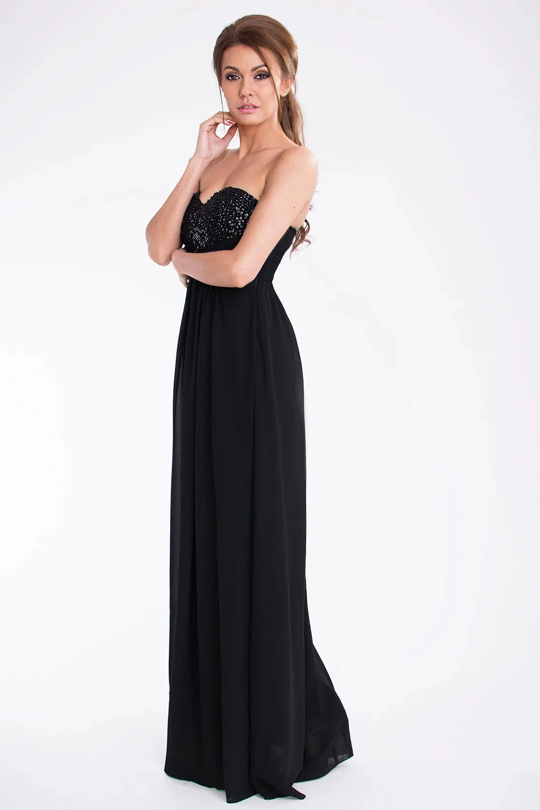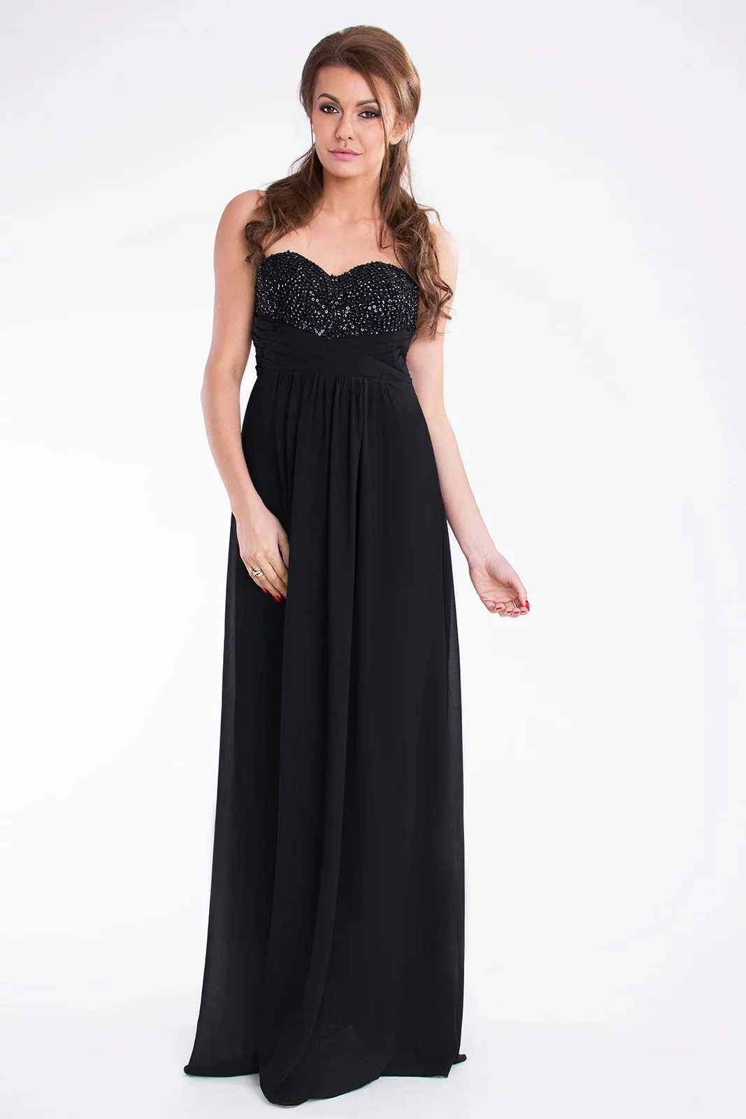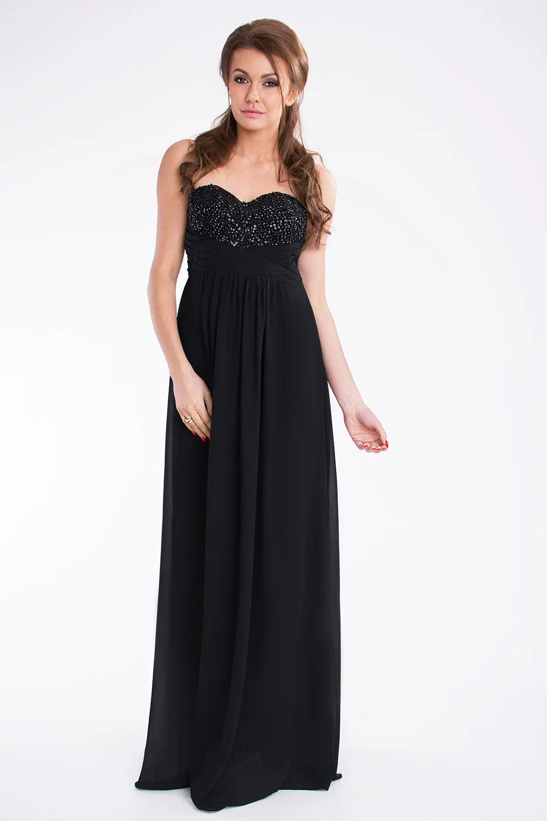 Dlouhé dámské plesové společenské šaty, top zdobený s flitry a korálky.
