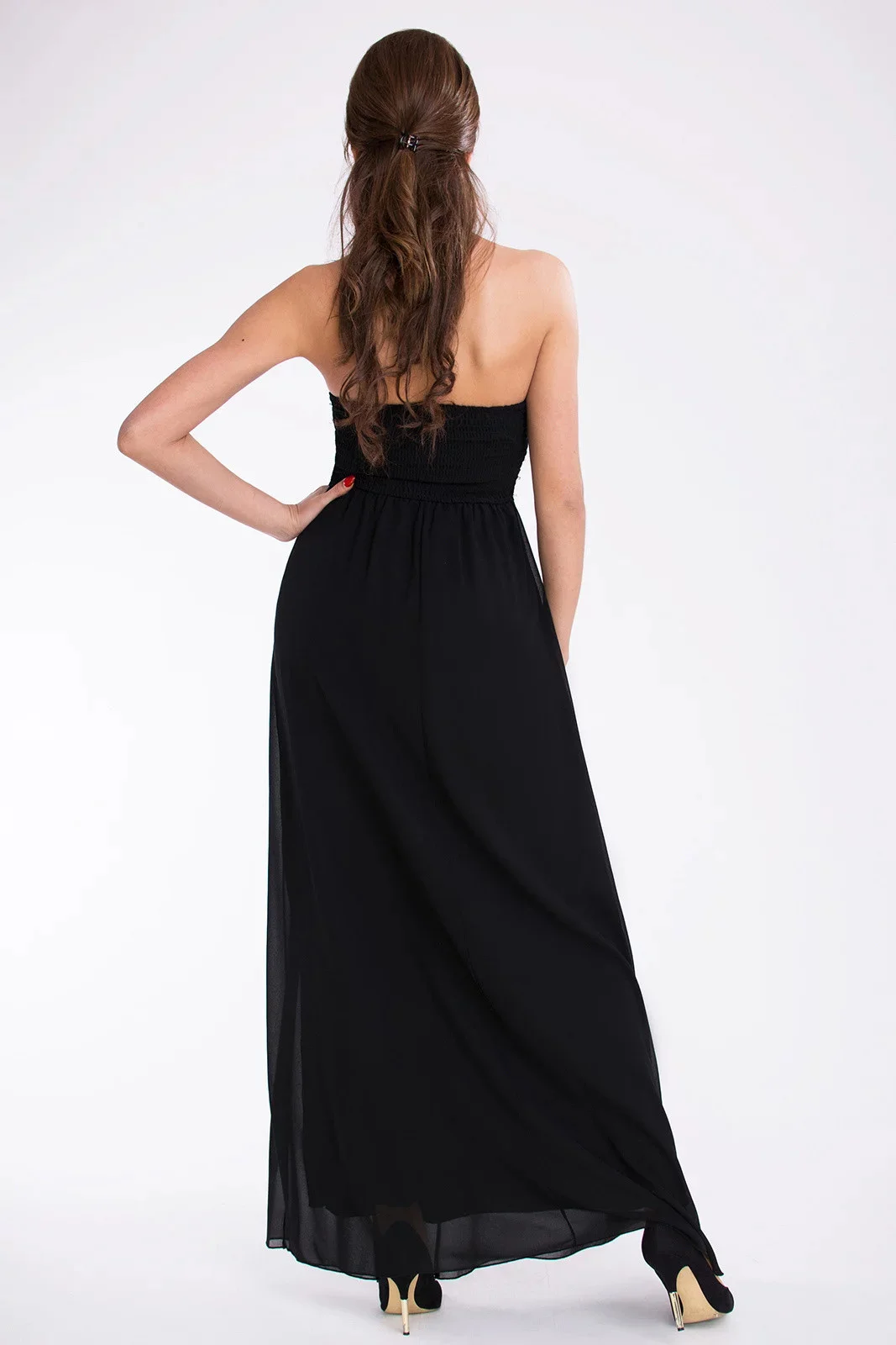Dámské dlouhé společenské plesové šaty BOOM černé - Černá / M - PINK BOOM
