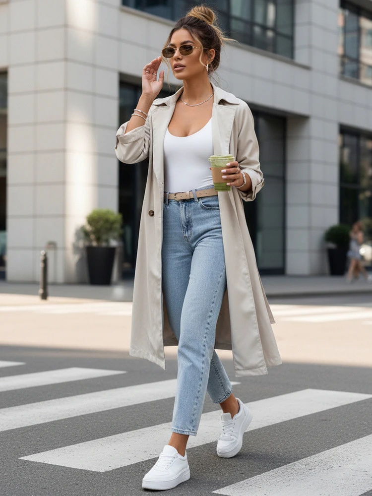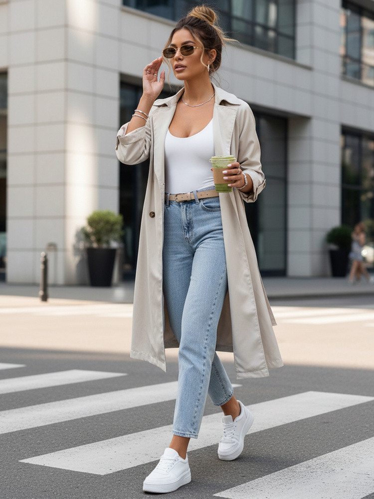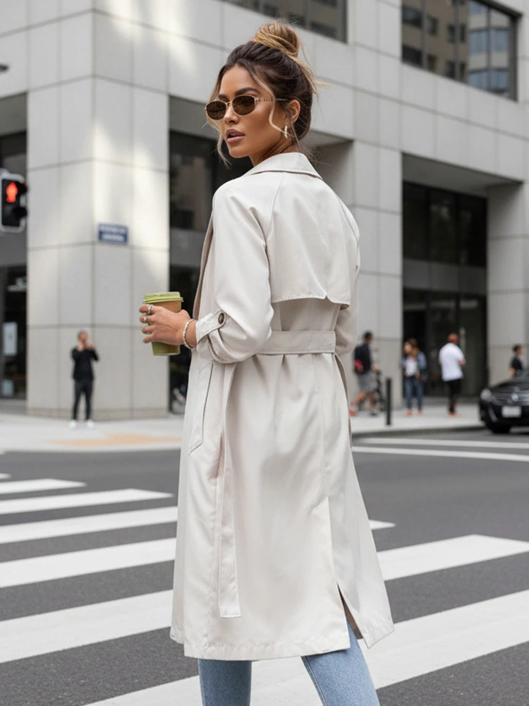 Objevte klasický trenčkot BINCIA, který kombinuje eleganci dlouhého střihu s pohodlím při používání. Zavazování v pase krásně zvýrazňuje pas a dodává siluetě štíhlý tvar a klasický límec dodává elegantní nádech. Kabát má zapínání na knoflíky a jeho délka poskytuje pohodlí a ochranu v chladnějších dnech. BINCIA je ideální volbou pro moderní ženu, která ocení styl i funkčnost.
