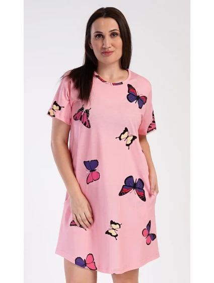 Dámské bavlněné domácí šaty s krátkým rukávem Garden. Dámské šaty s kulatým výstřihem jsou zdobeny potiském květin a decentním nápisem. Na bocích mají všité kapsy zdobené lemovkou. Použitý bavlněný materiál je příjemný a poddajný na dotek. Šaty jsou vhodné na spaní i na denní nošení.