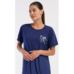 Dámské bavlněné domácí šaty s krátkým rukávem Janette. Domácí jednobarevné šaty s kulatým výstřihem a kapsami zdobí na hrudi obrázek s květinovým motivem. Použitý bavlněný materiál je příjemný a poddajný na dotek. Šaty jsou pohodlné, vhodné na spaní i na denní nošení.