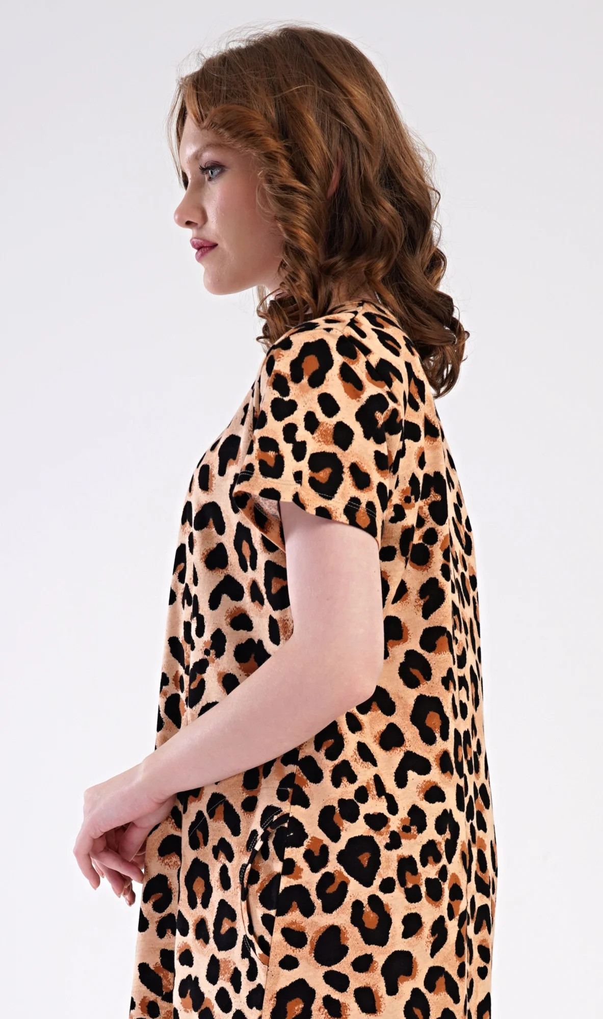 Dámské bavlněné domácí šaty s krátkým rukávem Laura. Domácí šaty s leopardím zorem mají kulatý výstřih a praktické kapsy. Použitý bavlněný materiál je příjemný a poddajný na dotek. Šaty jsou pohodlné, využijete je téměř při všech volnočasových aktivitách. Jsou vhodné na spaní i na denní nošení.