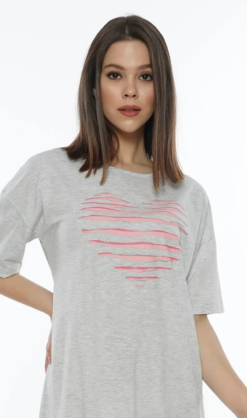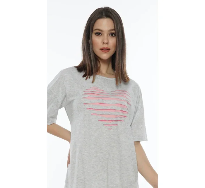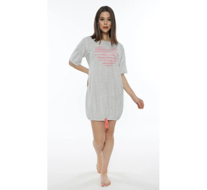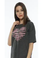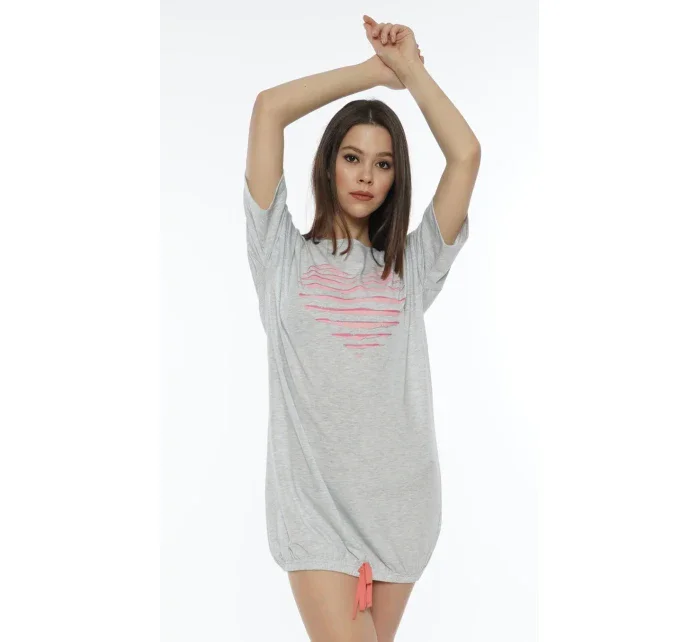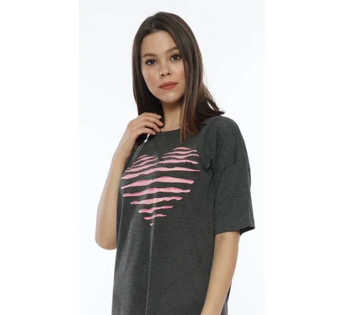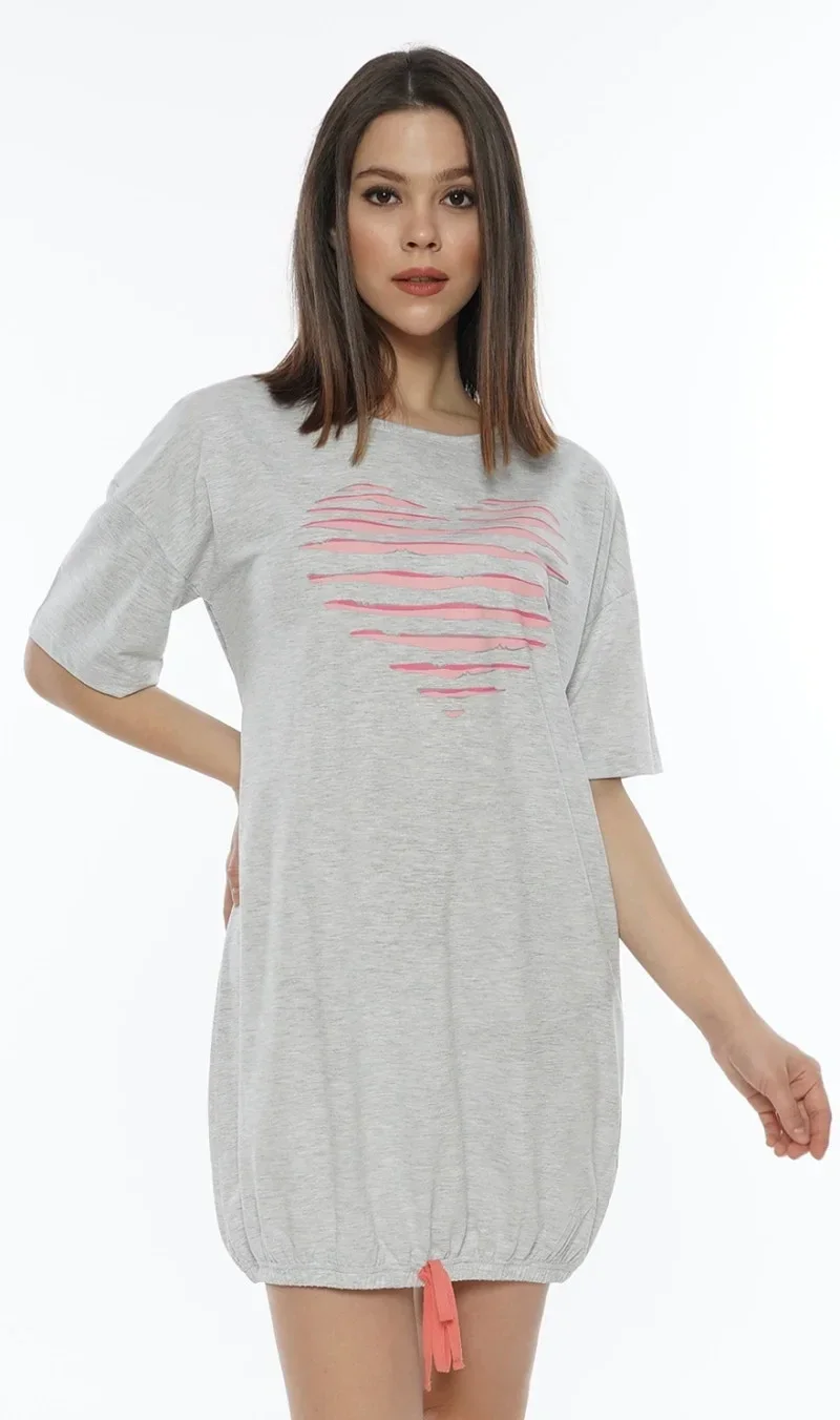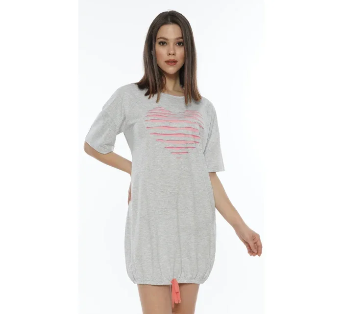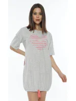 Dámské domácí šaty s krátkým rukávem Srdce. Pohodlné dámské šaty mikinového typu mají ve spodní části šňůrku ke stažení. Na přední části je obrázek srdce s efektem připomínajícím průstřihy. Šaty jsou díky svém střihu pohodlné, a jistě je využijete téměř při všech volnočasových aktivitách. Použitý materiál je příjemný a poddajný na dotek.