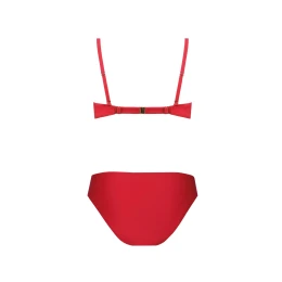 Dámské dvojdílné plavky značky Self. Vrchní díl je vyztužený kosticí spolu s nastavitelnými ramínky. Ozdobený je volánkem.