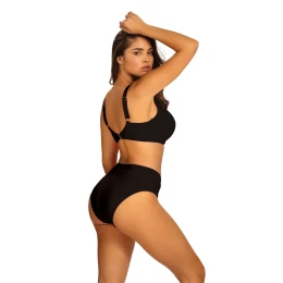Dámské dvoudílné plavky Bayamon6 995BM6 19 SELF - černá barva - z hladkého mikrovlákna - vyztužené košíčky - mezi košíčky ozdoba - s kosticemi - nastavitelná a neodepínatelná ramínka - klasické kalhotky - vyšší pas