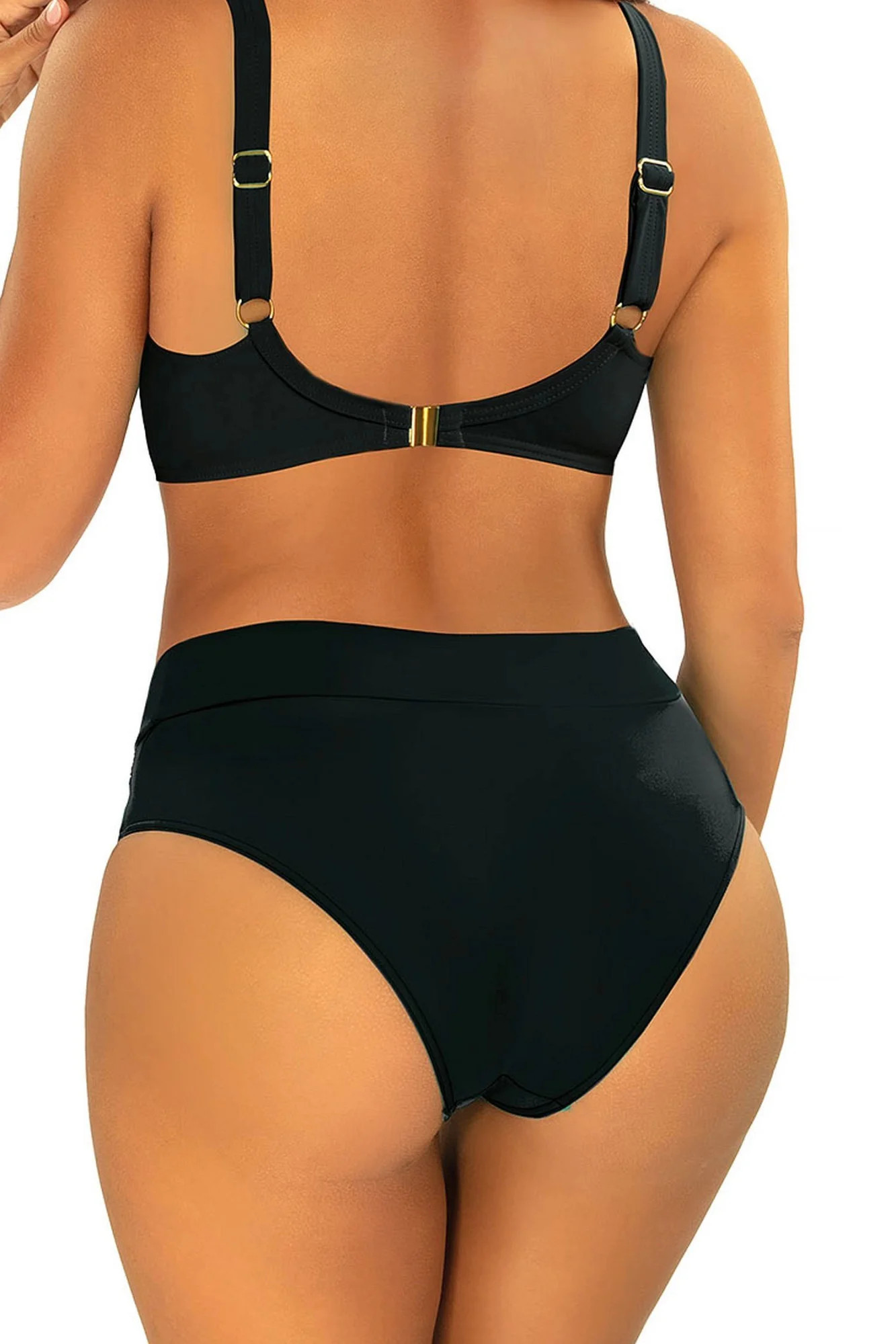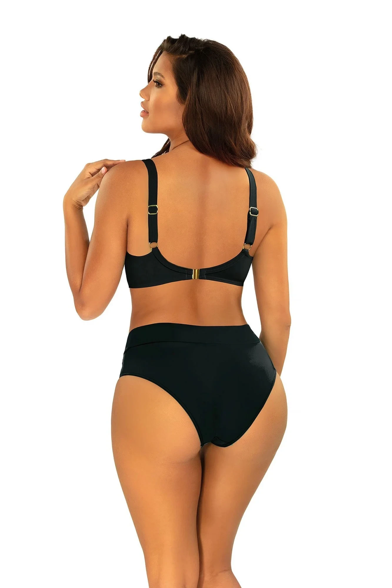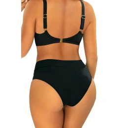 Dámské dvoudílné plavky Canoy 26 996B1 19 SELF - černá barva - plné košíčky zdobené volánky - s kosticemi - nastavitelná a neodepínatelná ramínka - zapínání vzadu na kovovou sponu - kalhotky klasického střihu
