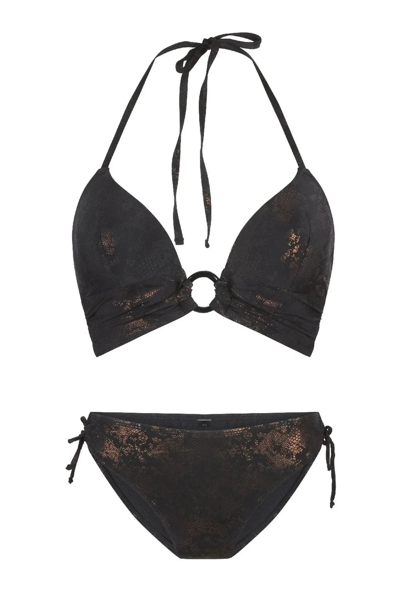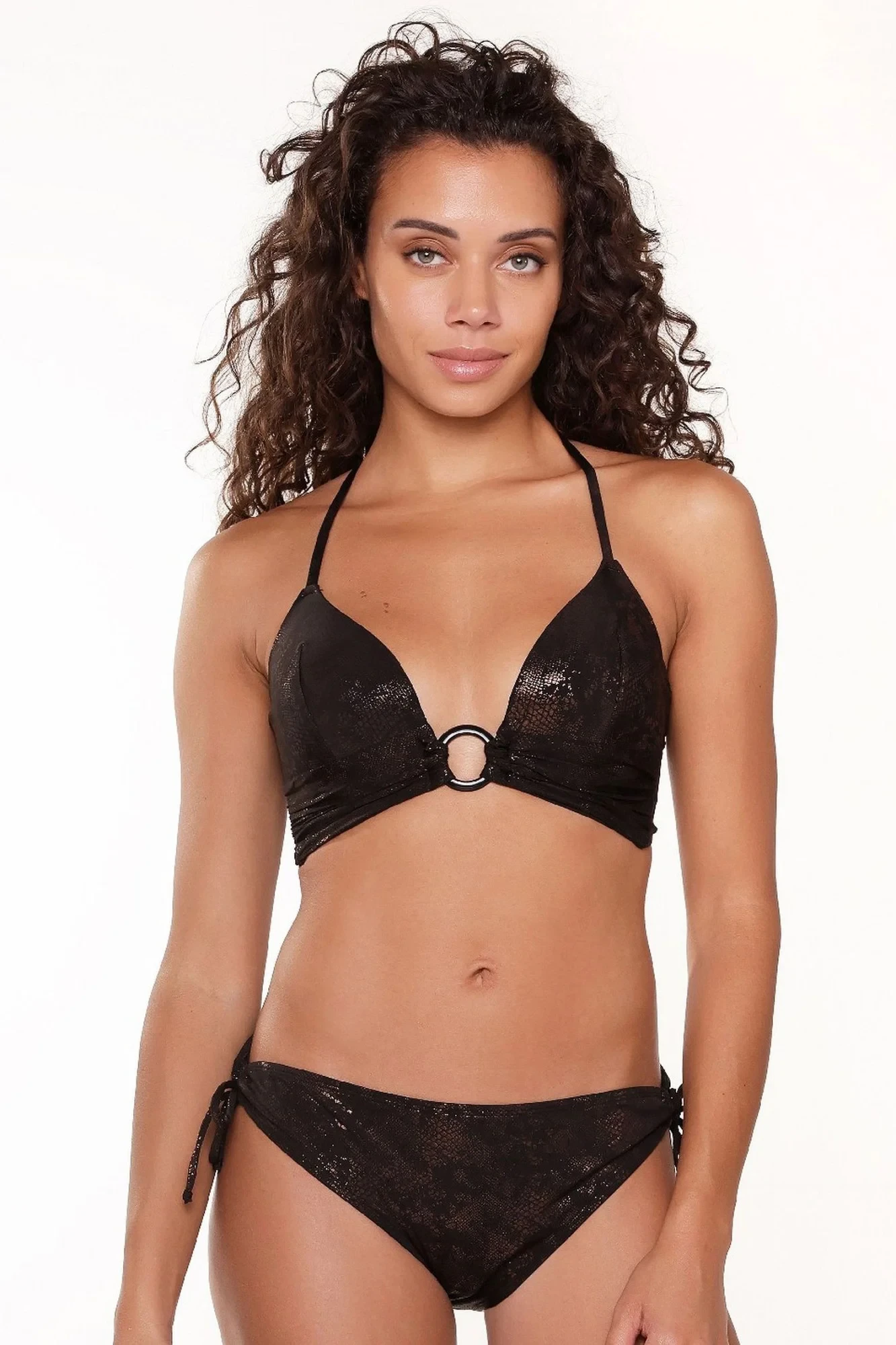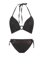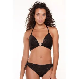 Dámské dvoudílné plavky 7208 LingaDore - černá barva - vyztužené trojúhelníkové košíčky - mezi košíčky je kroužek - s kosticemi - zavazování za krkem - zapínání na plastový háček - kalhotky se šněrováním na bocíchMateriálové složení: 85% polyester + 15% elastan