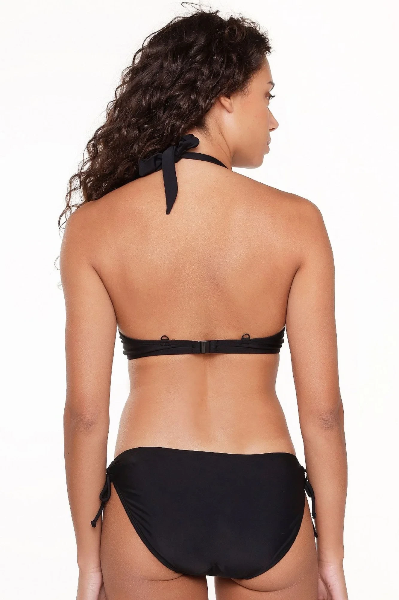 Dámské dvoudílné plavky 7214 black LingaDore - černá barva - košíčky zdobené řasením - mezi košíčky spona - zavazování za krkem nebo na zádech - kalhotky nižšího střihu - zavazování na bocíchMateriálové složení: 80% polyamid + 20% elastan