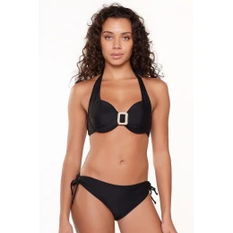 Dámské dvoudílné plavky 7214 black LingaDore - černá barva - košíčky zdobené řasením - mezi košíčky spona - zavazování za krkem nebo na zádech - kalhotky nižšího střihu - zavazování na bocích