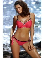 Dvoudílné plavky s výstřihem lemovaným krajkou. Vyztužené košíčky s push-up efektem, ideální pro malé a střední prsa. Kalhotky brazilského střihu se zavazováním na boku. Kalhotky mají sexy nařasení, které Vám udělá opticky kulatější a hezčí zadeček. Kvalitní italský materiál.