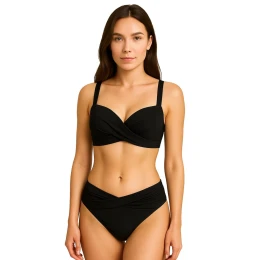 Dámské dvoudílné plavky Fashion 29 995SV1 19 SELF - černá barva - z vysoce jakostního mikrovlákna - vyztužené košíčky - push-up efekt - zdobené volánky na podprsence i kalhotkách - s kosticemi - nastavitelná ramínka - odolné proti chlóru a UV záření
