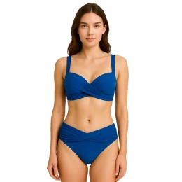 Dámské dvoudílné plavky Fashion 29 995SV1 30a SELF - modrá barva - z vysoce jakostního mikrovlákna - vyztužené košíčky - push-up efekt - zdobené volánky na podprsence i kalhotkách - s kosticemi - nastavitelná ramínka - odolné proti chlóru