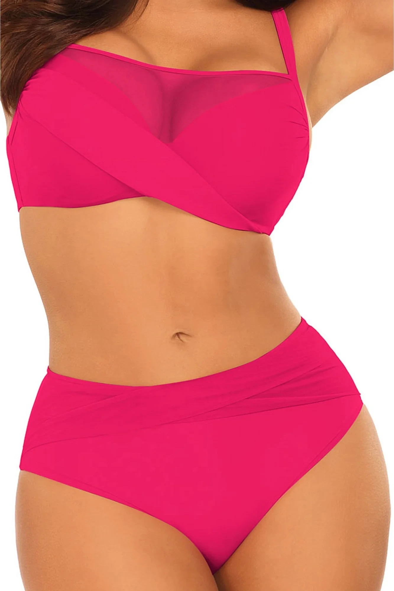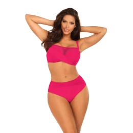 Dámské dvoudílné plavky Fashion32 1002N3 2 SELF - růžová barva - z vysoce jakostního mikrovlákna - zdobené síťovinou - tepelně tvarované košíčky push-up - nastavitelná a odepínatelná ramínka - hladké kalhotky