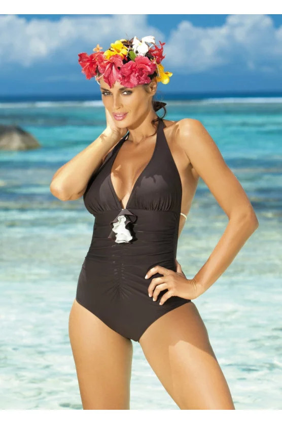 Jednodílné plavky Martina. Na pohled velmi prosté a skromné. Ale nenechte se mýlit! Sedí perfektně a působí velmi sexy. Díky vyztuženým košíčkům jsou zvýrazněny Vaše přednosti. Model má několik prošití, čímž vzniká velice zajímavý střih. Pod prsy je jemná guma. Ramínka se zavazují za krkem. Plavky se vážou rovněž na zádech, která jsou odhalená. Krásná, tropická barva.
