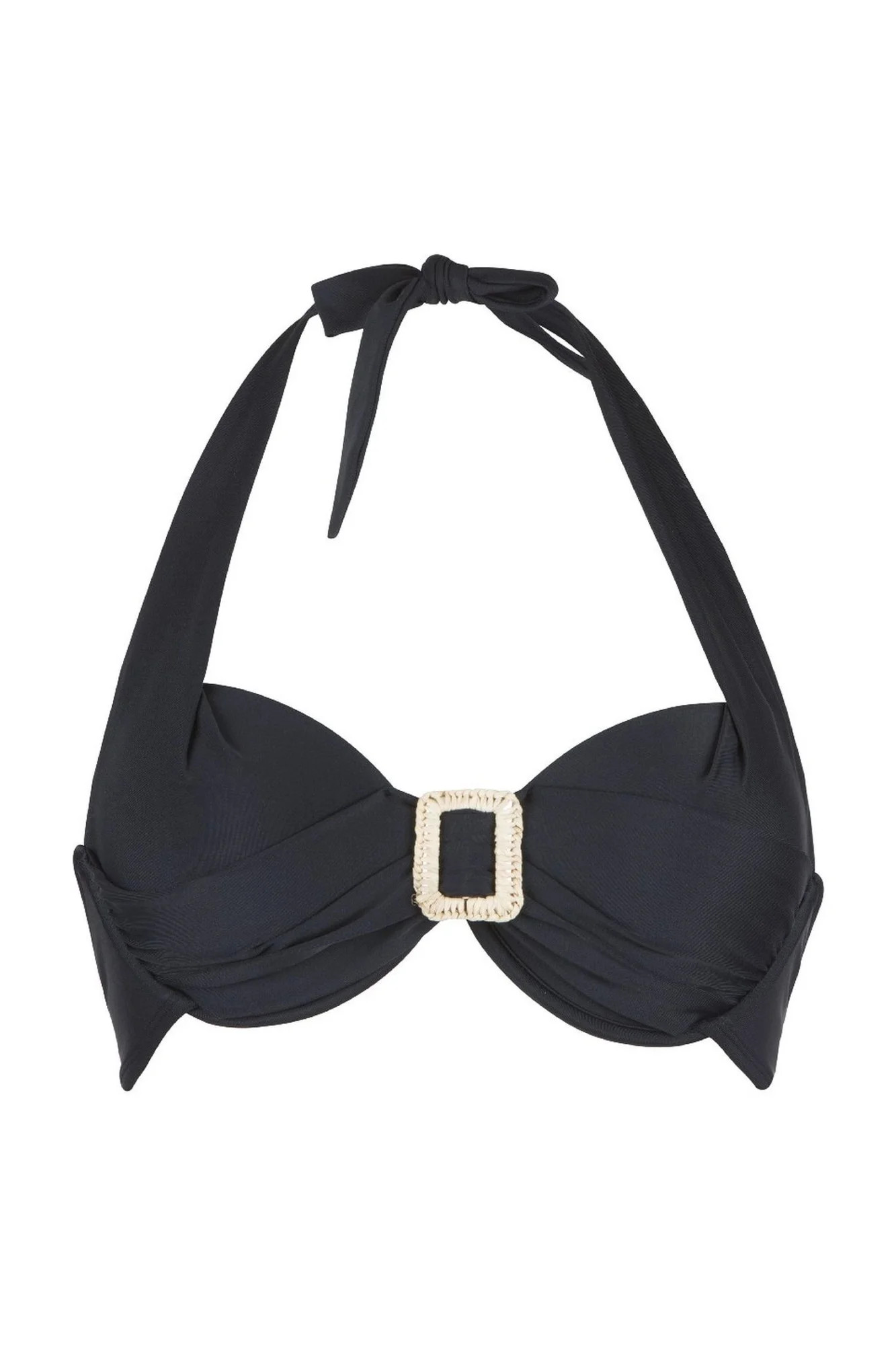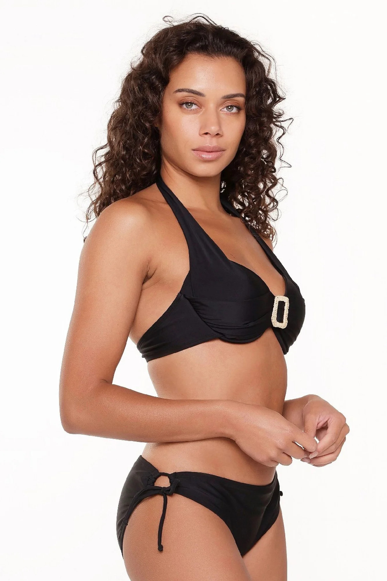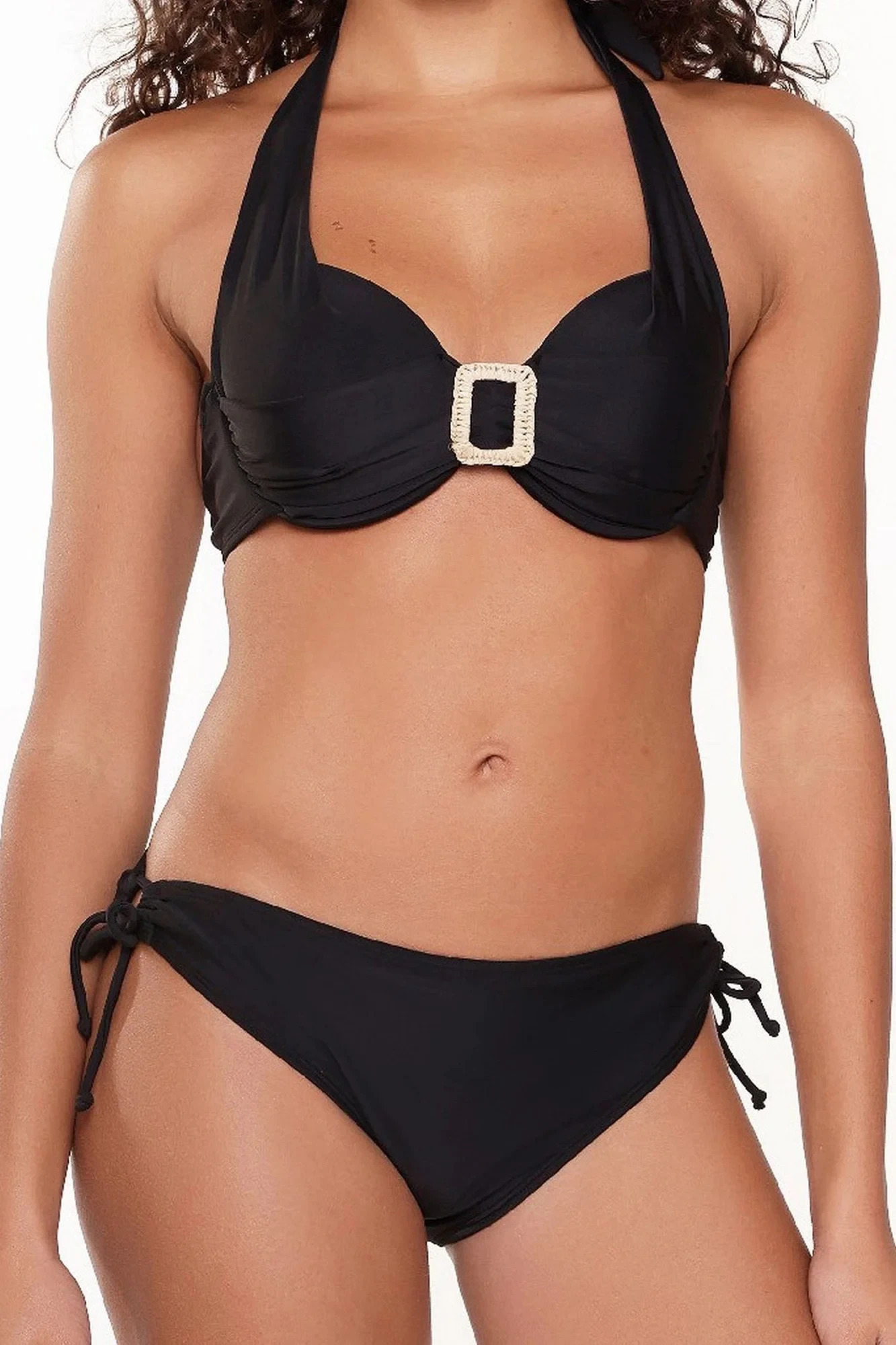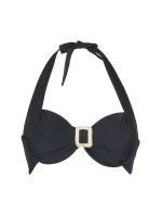 Dámské dvoudílné plavky 7214 black LingaDore - černá barva - košíčky zdobené řasením - mezi košíčky spona - zavazování za krkem nebo na zádech - kalhotky nižšího střihu - zavazování na bocích