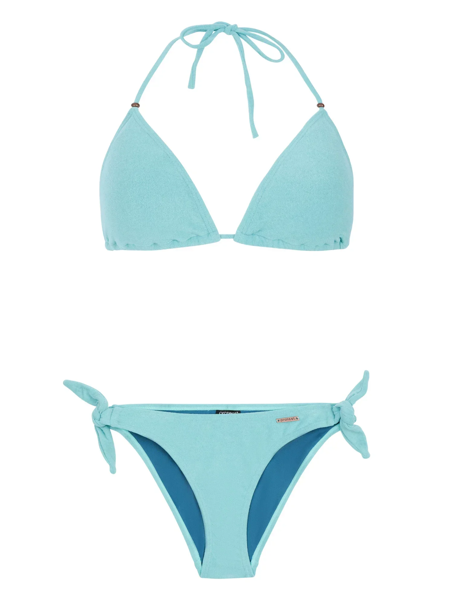 Odpovídající kalhotky bikin mají pravidelný střih a pas.