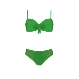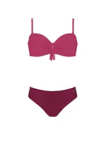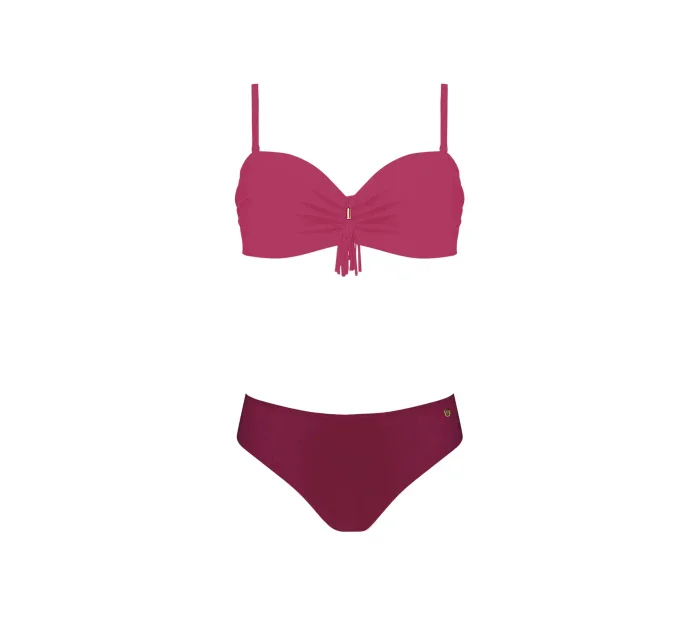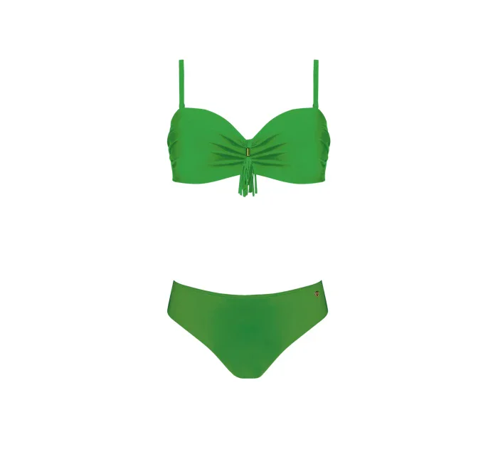 Dámské dvoudílné plavky Monako 5, vrchní díl vyztužený, s kosticí, nabíraný, balkonového střihu. Mezi prsy ozdobný strapec. Ramínka jsou odepínací, na posouvání. Spodní díl klasického střihu.