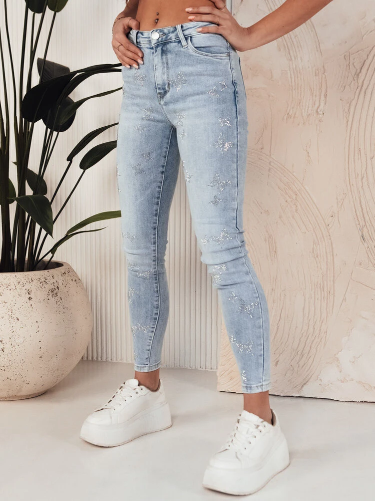 Obohaťte svůj šatník o tyto jedinečné džíny, které kombinují klasický vzhled s nečekaným prvkem - flitrovanými motýlími vzory. Tyto kalhoty jsou ideální pro ženy, které chtějí svému každodennímu outfitu dodat šmrnc, a jsou stejně pohodlné jako stylové.