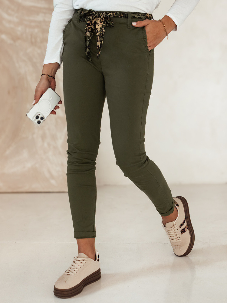 Dámské džínové kalhoty CHARMYOU s páskem olivové FashionStreet UY2270