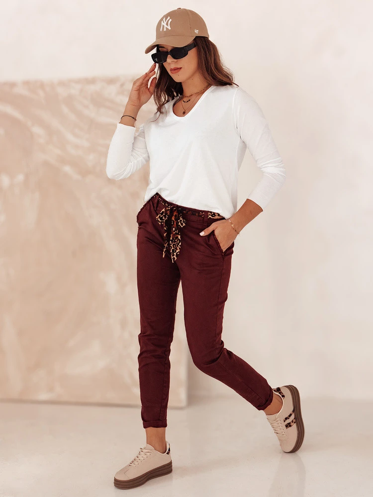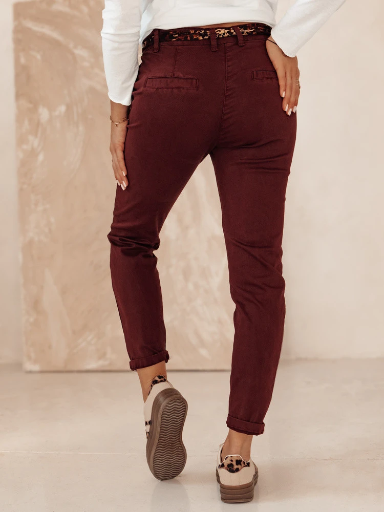 Dámské džínové kalhoty CHARMYOU s páskem vínové FashionStreet UY2271