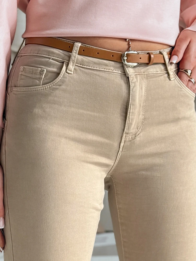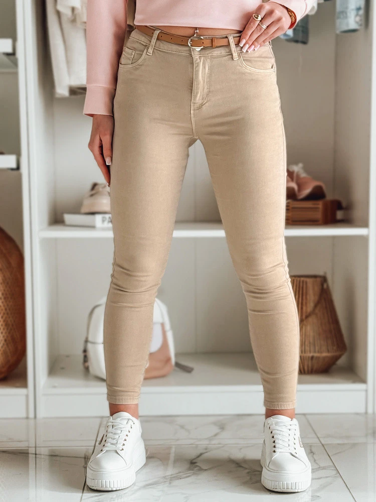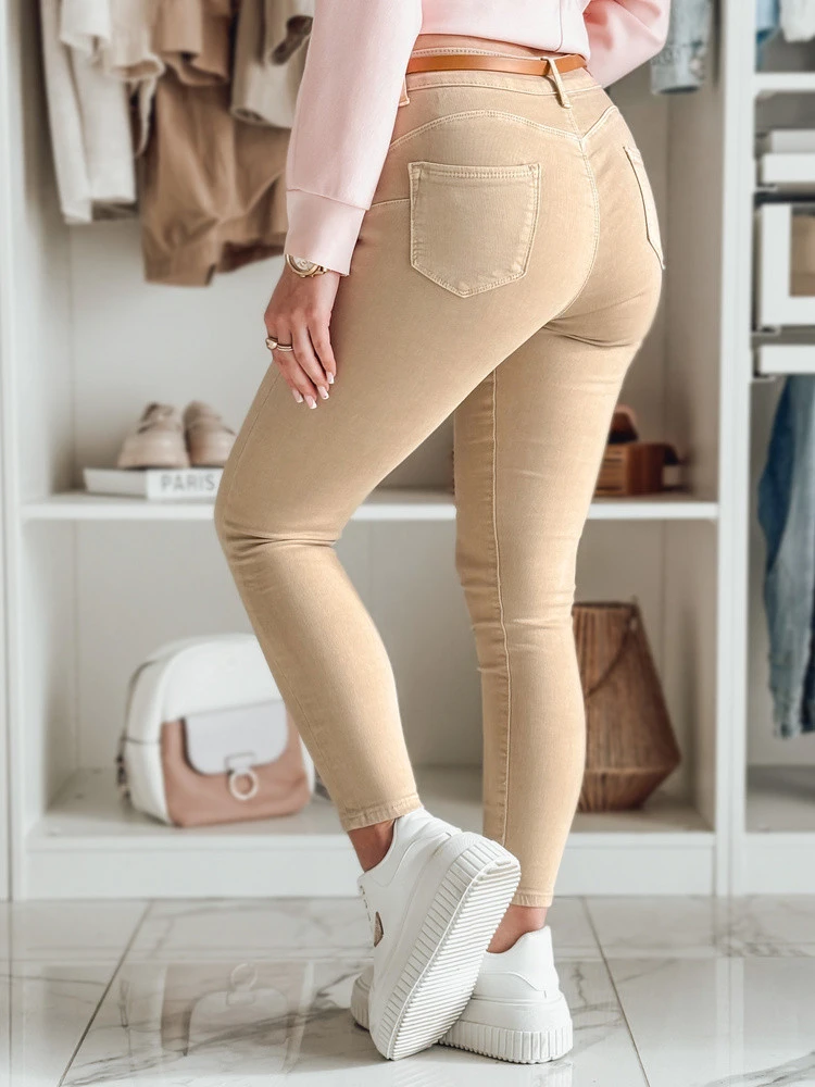Dámské džínové kalhoty CLARET s páskem ve světle hnědé barvě FashionStreet UY2455