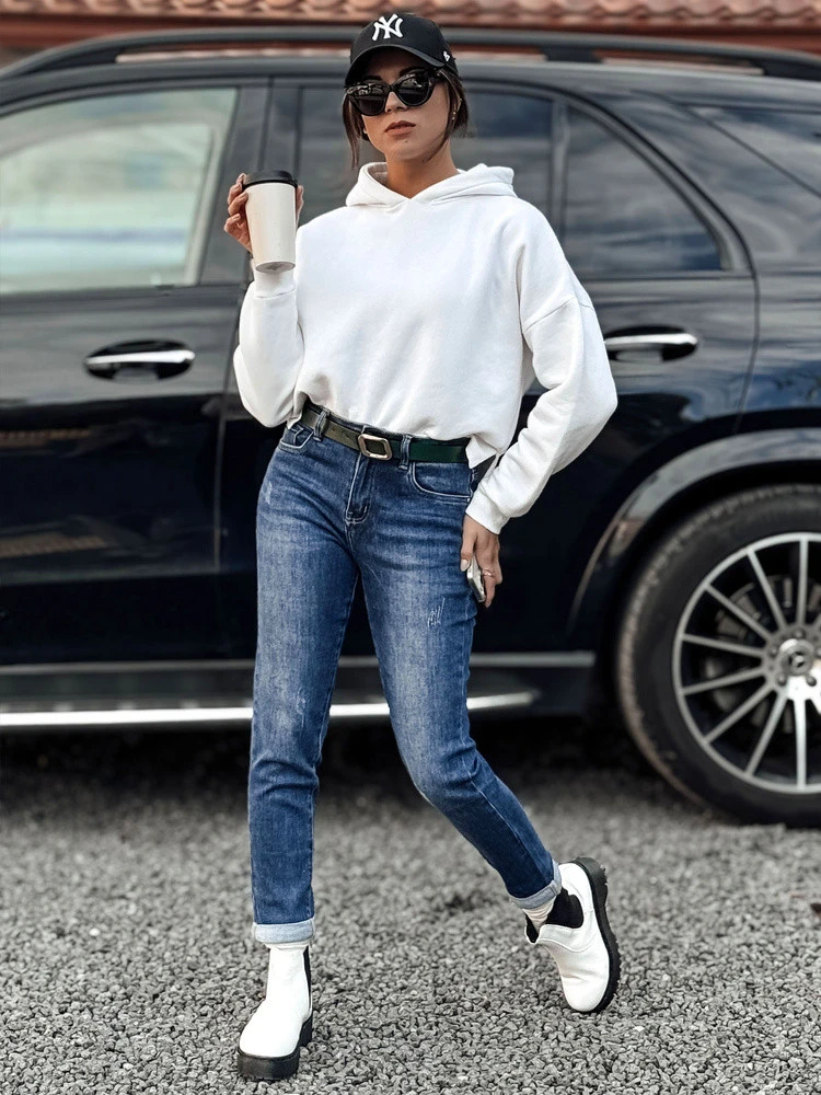 Dámské džínové kalhoty s odřeným páskem JELVANI