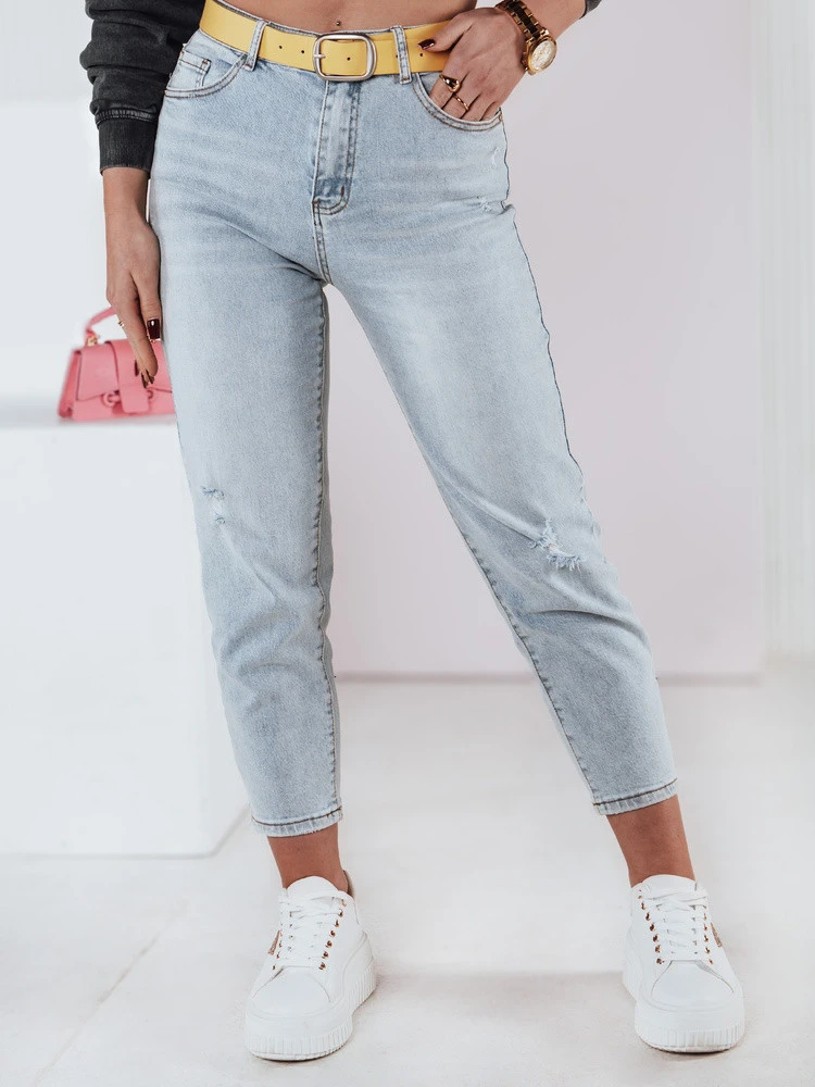 Dámské džínové kalhoty mom fit s páskem JEANMOMENT
