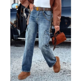 Spodnie damskie jeansowe cargo z paskiem w zestawie URBANNOW