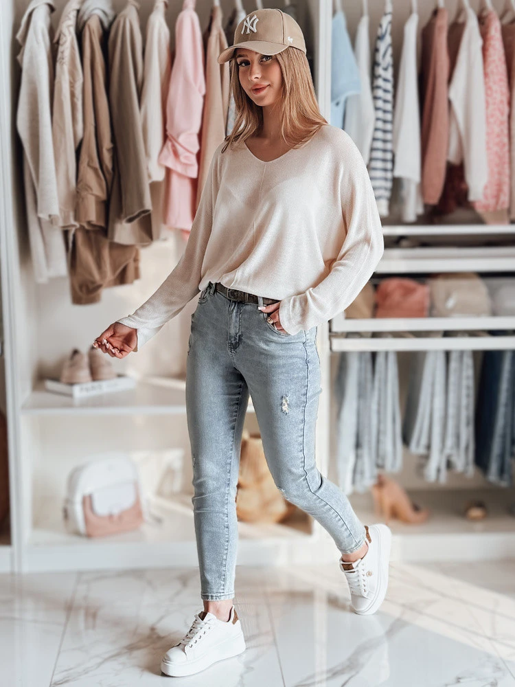 Dámské džínové kalhoty slim fit jsou dokonalou kombinací pohodlí a stylu. Vysoký střih zvýrazňuje siluetu, zatímco jemné odírání jim dodává charakter. Ozdobné kapsy, zapínání na knoflík a zip z nich činí praktickou volbu pro každodenní nošení. Součástí kompletu je pásek, který dokonale ladí se střihem kalhot. Budou se hodit jak pro ležérní styling, tak pro elegantní soupravy.