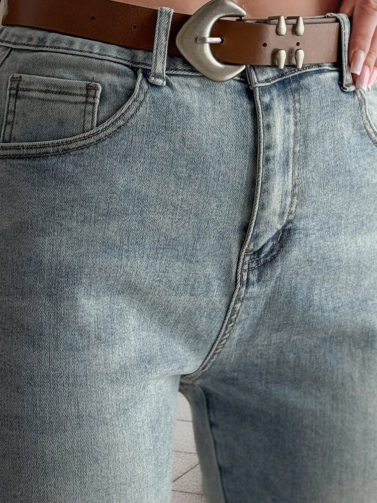 Dámské džíny slim fit střihu s vysokým sedem, které krásně zvýrazňují siluetu, tvarují postavu a opticky zeštíhlují nohy. Ozdobné kapsy dodávají praktičnost, zatímco push-up efekt decentně zvýrazňuje tvary. Zapínání na knoflík a zip, doplněné páskem. Nohavice v délce ke kotníkům se skvěle hodí k botám a teniskám.