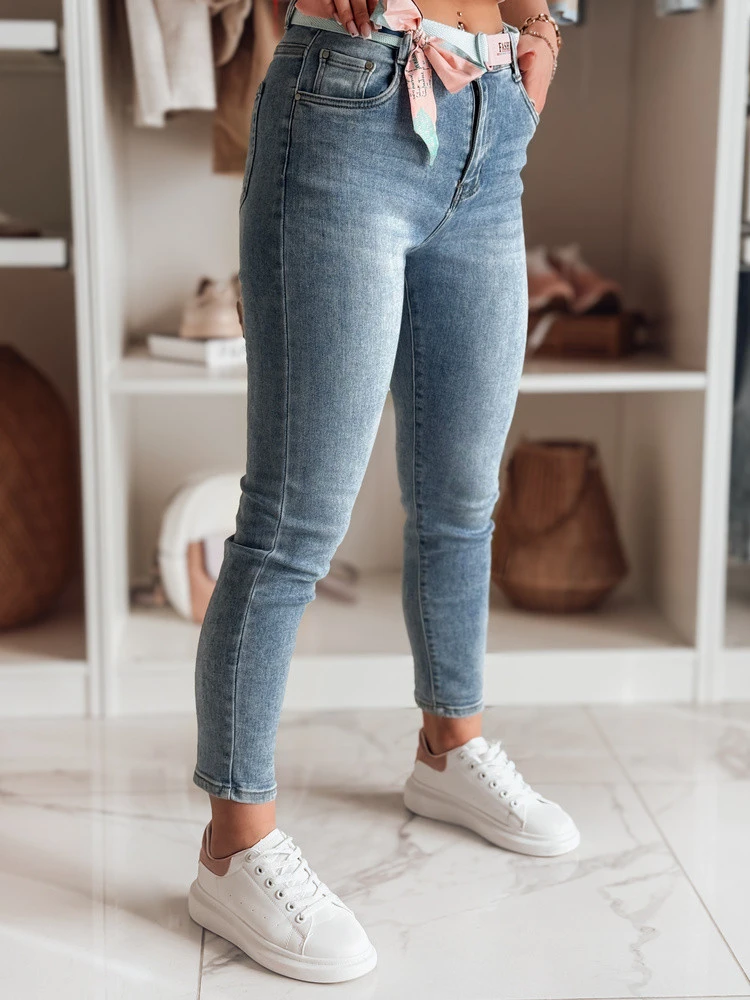 Dámské džínové kalhoty slim fit s páskem TRENDLINE modré FashionStreet UY2478