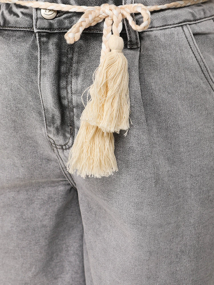 Dámské džínové šortky s ozdobnou šňůrkou SY0510 šedé