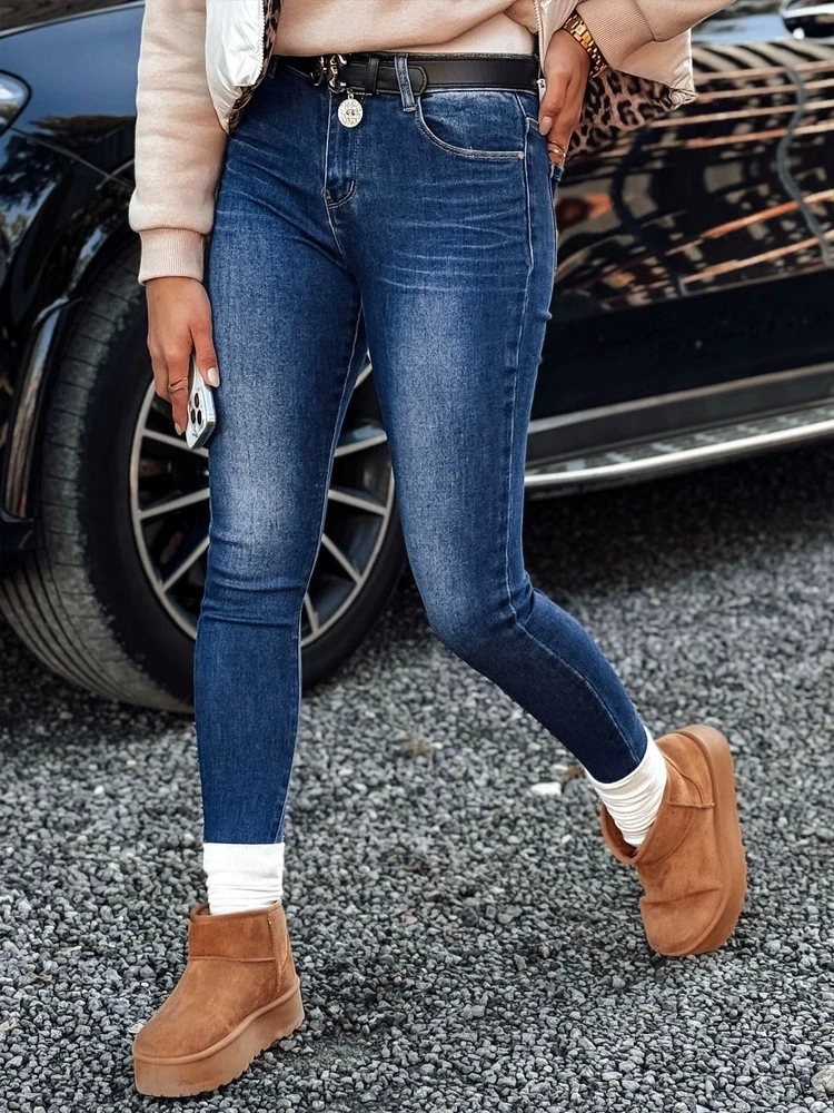 Spodnie damskie jeansowe skinny z paskiem w zestawie JEANLIFE