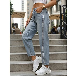 Dámské džíny balonového střihu s ozdobnými nýty modré UY2983