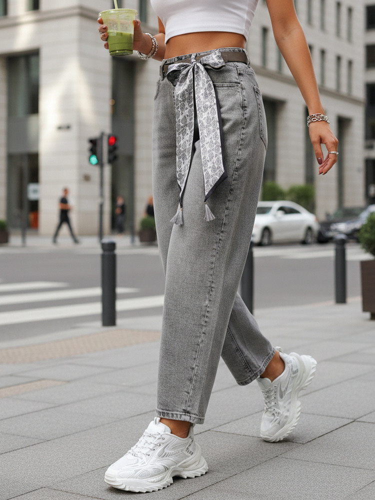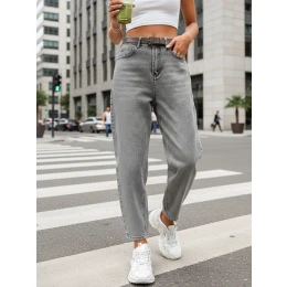 Dámské džíny balonového střihu s páskem šedé FashionStreet UY2888