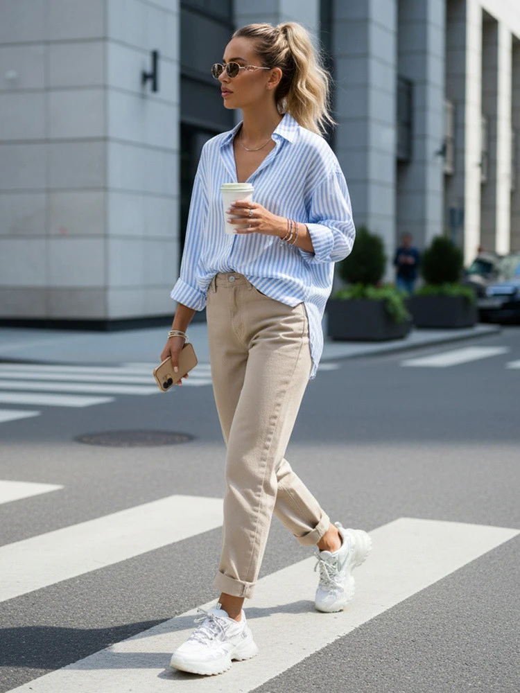 Džíny jsou ideální pro každodenní stylizaci do práce, na procházku nebo na schůzku do města, hodí se k tričkům, košilím a lehkým svetrům a lze je nosit s teniskami, mokasínami nebo botami a vytvořit tak ucelený a elegantní vzhled pro různé příležitosti.