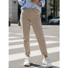 Dámské džíny mom fit s vysokým pasem UY2872 beige
