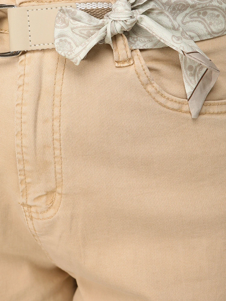 Dámské džíny s ležérním střihem kombinují pohodlí při nošení s estetickým zpracováním. Vysoký střih dobře sedí v pase a podporuje proporce siluety. Příměs elastanu zlepšuje pohodlí při každodenním pohybu. Pásek, který je součástí soupravy, je praktickým doplňkem střihu.