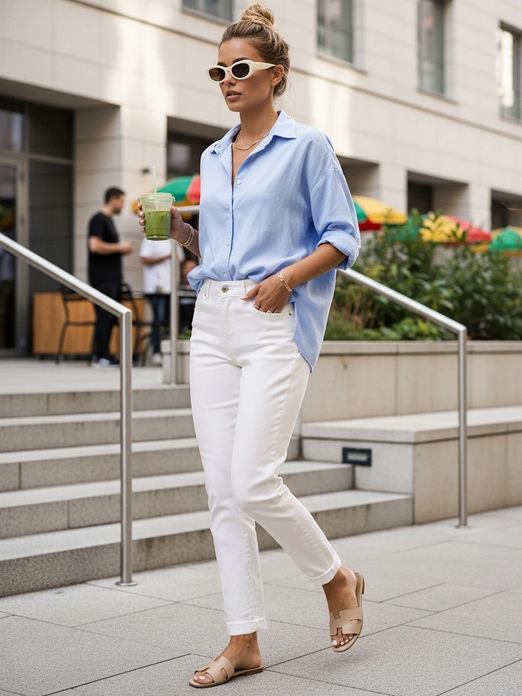 Džíny jsou ideální pro ležérní a městské stylizace a lze je kombinovat s košilí, tričkem nebo lehkým svetrem a vytvořit tak pohodlný každodenní vzhled. Díky nadčasovému střihu se hodí k teniskám, žabkám nebo botám na vysokém podpatku.